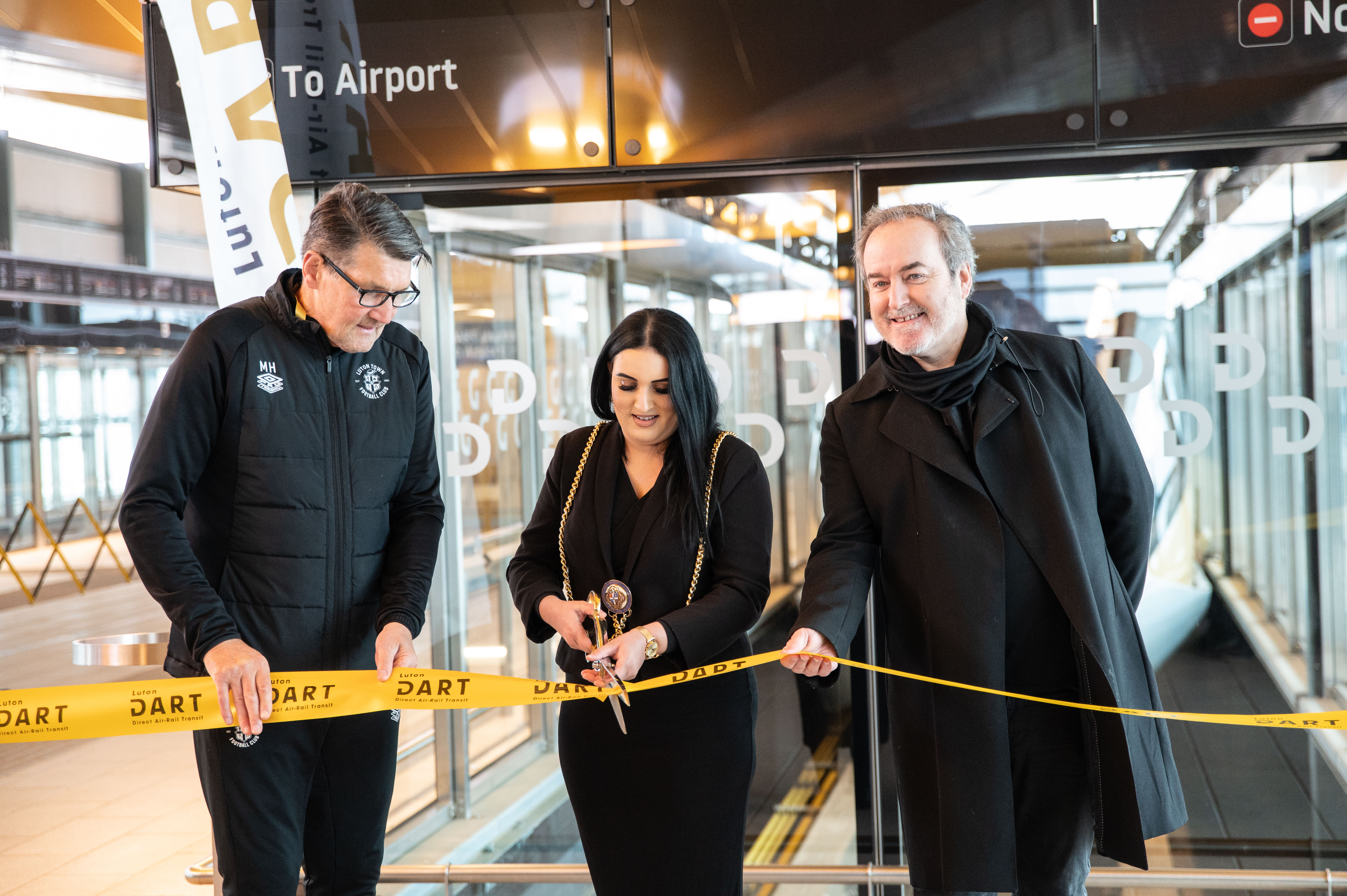 Ribbon cutting Sameera Saleem, Mick Harford, David Arnold